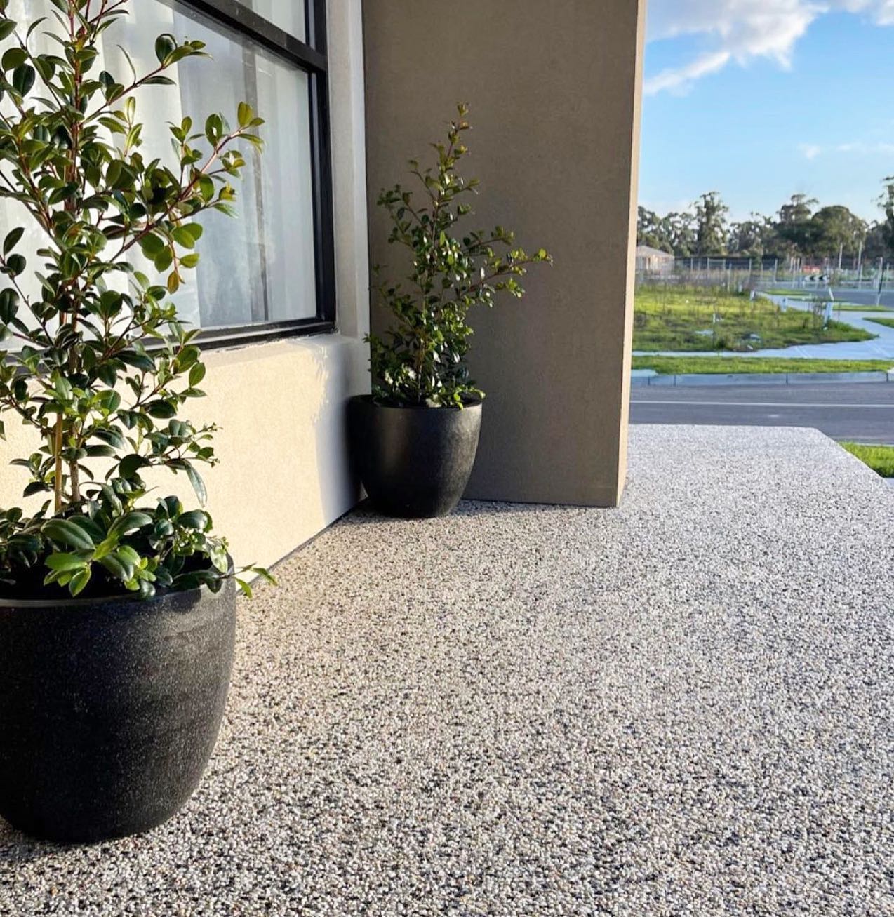 Unique and attractive design: In addition to its durability and low maintenance, exposed aggregate concrete also offers a range of attractive design options. The exposed aggregate can be made from various materials, such as pebbles, stones, or glass, and can be mixed and matched to create unique and eye-catching patterns. It can also be coloured or stained to match the surrounding landscape or architecture.