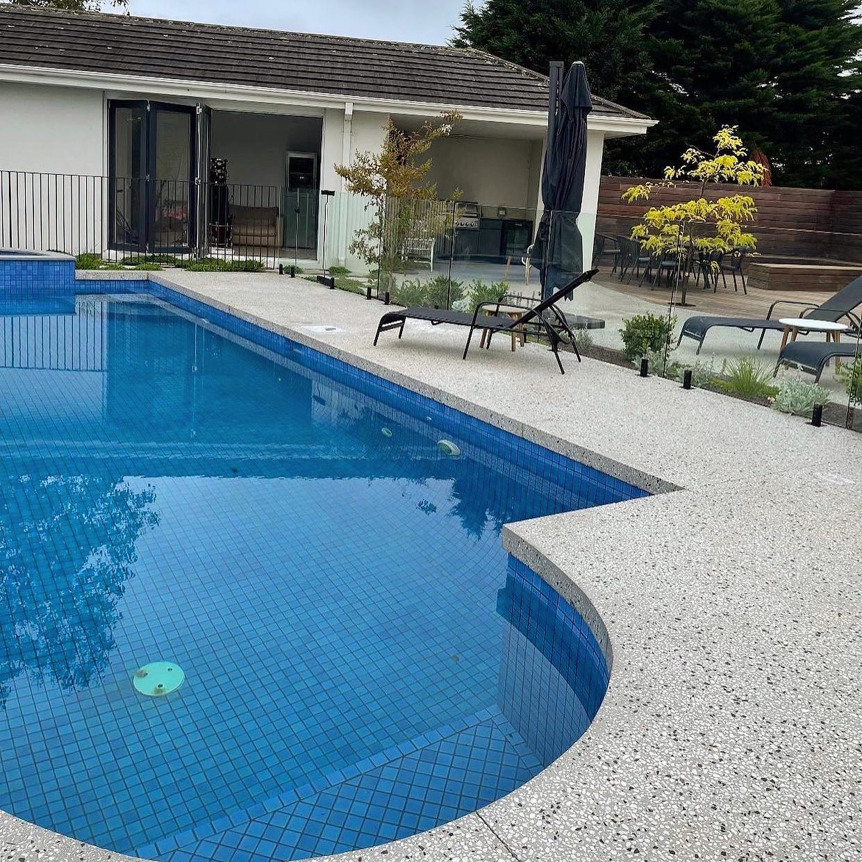 safer, more stylish pool surround, exposed aggregate brings both function and